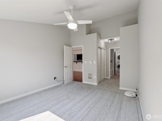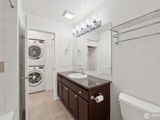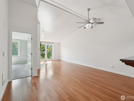 Top-floor condo in the heart of Lower Queen Anne - natural light and Space Needle views! This 1BD/1BA home features vaulted ceilings, updated interior, stainless steel appliances, remote controlled blinds & ceiling fans, in-unit laundry, and recently added A/C. The open-concept layout maximizes space and light. Enjoy building amenities including a garden terrace, gym, Google fiber, secure garage parking, and a separate storage unit. Commute with ease, or enjoy the impressive 97 WalkScore. City living at its best with restaurants, parks, grocery stores, museums, Seattle Center, and transit just moments away. Pre-inspected for your convenience.