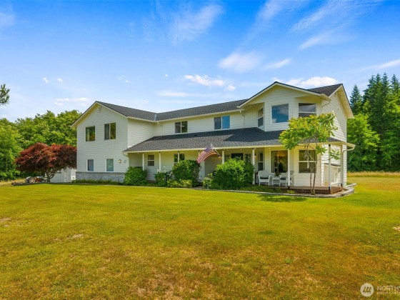 A true one-of-a-kind architectural gem situated on a gorgeous 5 acre hilltop setting 20 min to Olympia, 8 min to Elma! This timeless custom built farmhouse has 5 bdrms, 3.5 bths, 3377 SF with Olympic views. Rich in character and filled with sophisticated details, featuring french oak floors, hand textured walls, carrera marble kitchen countertops & handmade fire clay tile fireplace! The primary en-suite bdrm is a true sanctuary w/walk in closet + stunning views of the forest. Relax on the large patio (wired for hot tub) that overlooks picturesque backyard. BONUS- fully equipped ADU upstairs, perfect for guests or multigenerational living. HUGE 1200 sq ft shop + attached 2 car garage. Also EV charger! This is the one you've been waiting for!