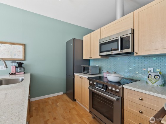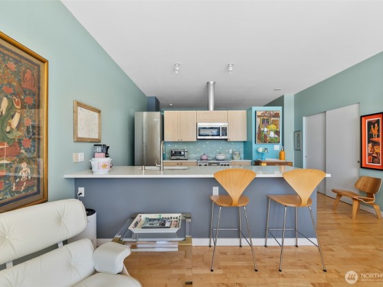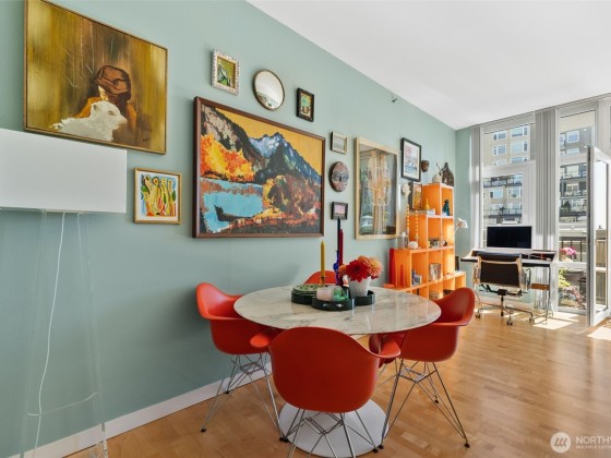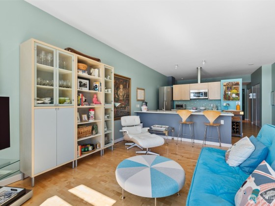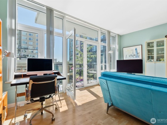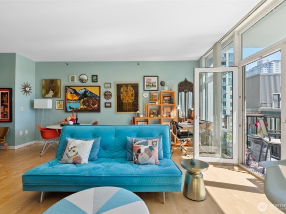 Welcome to the Klee! Superb NW Belltown location, steps away from dining, entertainment, & all downtown has to offer. Amenities include 24-hr Concierge, EV charging, Community room, Outdoor terrace, Business center, Gym, & Guest suite. Minutes to Pike Place Market, Seattle Center/Space Needle, Google & Amazon. Easy access to local transit. No rental cap/ Amazing Walk Score of 95! 1 parking space in secure garage and a storage unit. This light filled South facing unit on the 6th floor features floor to ceiling windows, and gorgeous designer updates including maple hardwood floors, IceStone counters, moonstone tile backsplash & high end European appliances including W/D. Enjoy fresh air & views of Elliot Bay & Mt. Rainier from your balcony!