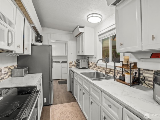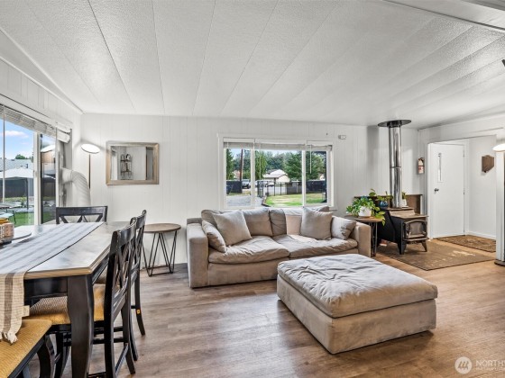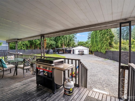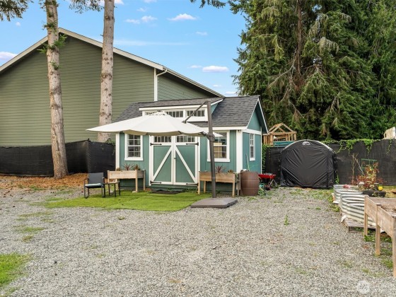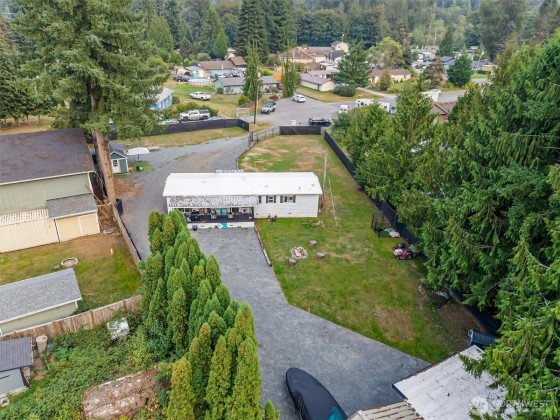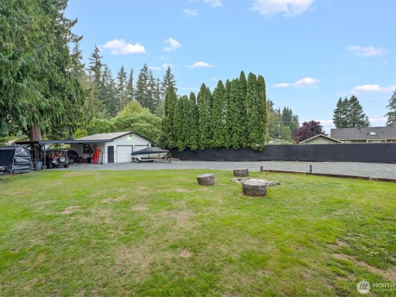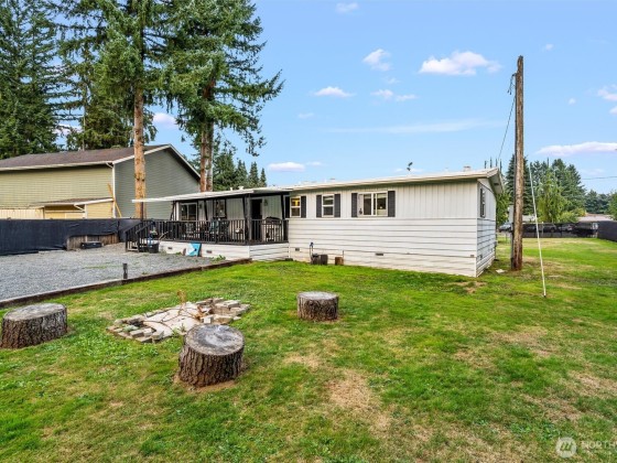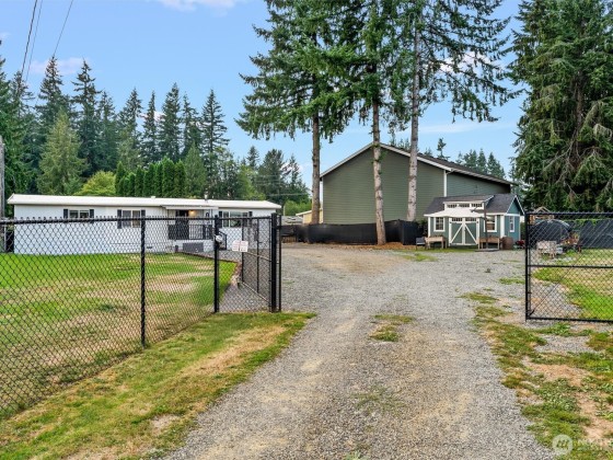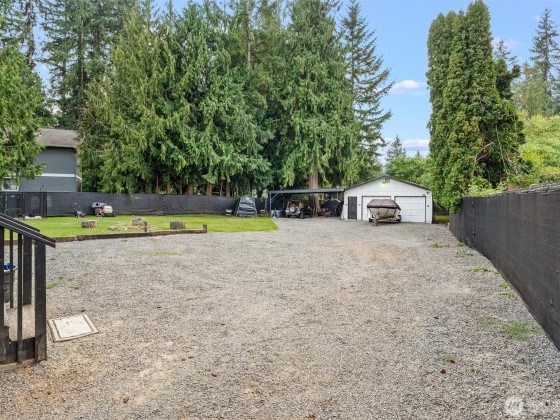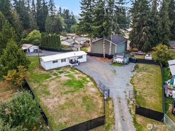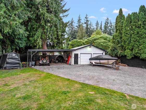 Incredible opportunity in Lake Stevens! Shy ½ acre level lot on a quiet cul-de-sac with easy access to Hwy 9 & Hwy 92. This generously updated 2 bedroom, 2 bath home features a new roof, windows, trim & fresh interior paint. LVP flooring throughout main living area + a cozy wood burning fireplace. The kitchen shines w/newer countertops, lighting, faucets & brand-new stainless appliances. Detached 2-car garage is finished with heated workout area, storage + 2 car covered carport. Updated bath includes dual sinks & new shower. Covered porch, painted deck, and potential for ADU (buyer to verify). BONUS-Detached office/craft room that is insulated. Fully fenced with private gate & ready to move in or live while planning your dream home!