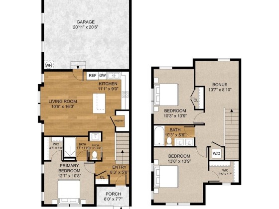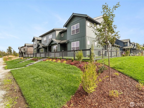 Beautiful townhome in Trailside located along the pond and trail, offering fantastic views and privacy. This modern, craftsman style home offers warm, premium finishes throughout. This is a corner, 3-bedroom design w/ a 2-car garage & fenced front yard overlooking the pond. Main floor offers a welcoming great room, primary bedroom w/ en-suite bath, & kitchen w/ quartz counters, custom wood cabinets, & stainless-steel appliance package. Upstairs you will find 2 additional bedrooms, full bath, a bonus space, & laundry closet. Features include ductless heat/AC, premium flooring, pantry, ample storage, 9-ft ceilings on main floor - the list goes on. 5.5% permanent rate buy-down available & no HOA dues until 2027!