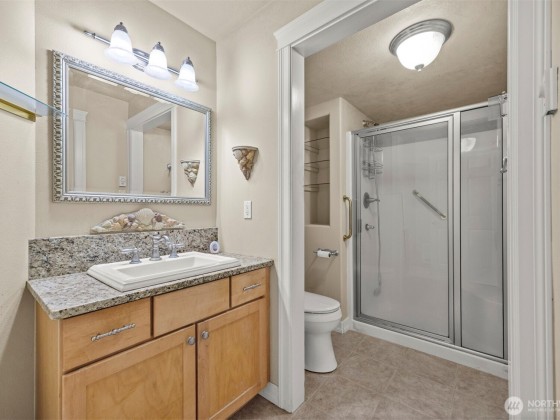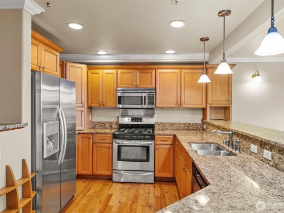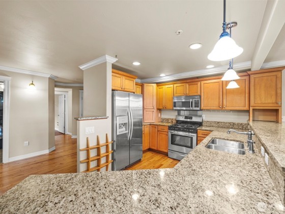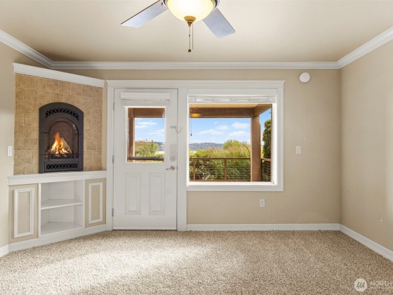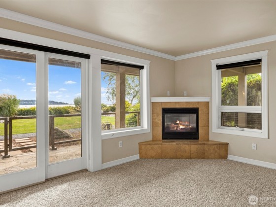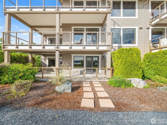 Perched above Drayton Harbor, this stunning Seascape Waterfront Condo offers panoramic views of Semiahmoo and beyond. This spacious 3-bedroom, 2-bath corner unit blends comfort and style with hardwood floors, granite countertops, and brand new carpet. The open layout is perfect for entertaining, featuring a gas fireplace in both the living room and primary suite. Enjoy sunsets from your covered patio, with views that never get old. The primary suite includes a walk-in closet, radiant floor heat in the bath, and private patio access. Individual garage, elevator access, fitness room, and spa included. All this just a short walk to shops, restaurants, Marine Park, and minutes to the Canadian border and I-5.