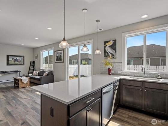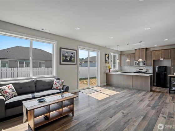 Stunning 2 bed, 1.75 bath, with an office/den in the desirable 55+ community of Majestic View Estates. Enjoy the open-concept layout between kitchen, dining, & living rm, perfect for entertaining. Double door entry leads to the office/den area off entry. Kitchen features quartz counters w/large bar & plenty of seating. SS appliances, gas cook-top, high-end cabinets, & tile bask splash. Beautiful LVP flooring throughout living space. Relax in your large primary bedroom w/ensuite bath & walk-in closet or cozy up to the gas fireplace in the living area. Upgrades include tankless water heater, sprinkler system, & secure wall safe. Enjoy the clubhouse w/pool, exercise room, and Low HOA dues. All near downtown Orting w/trails & amenities.