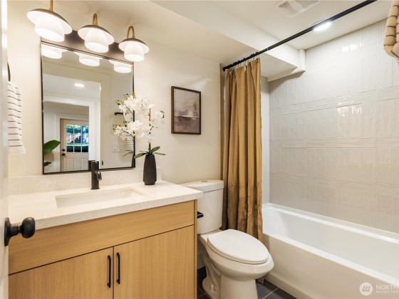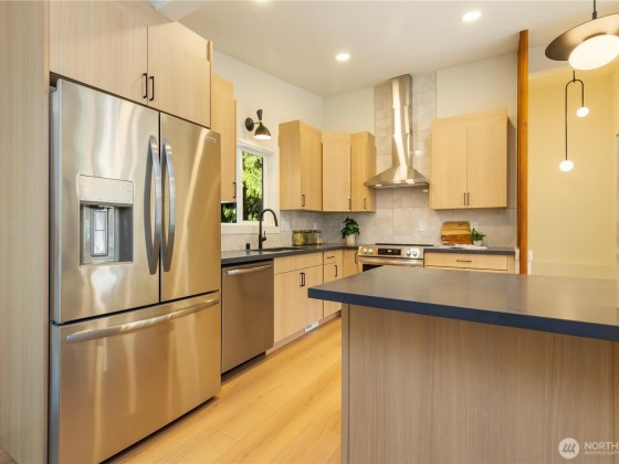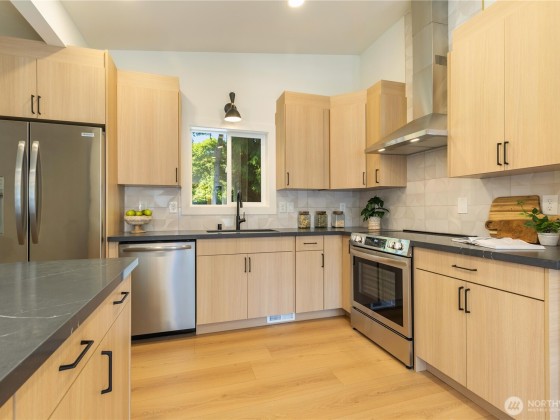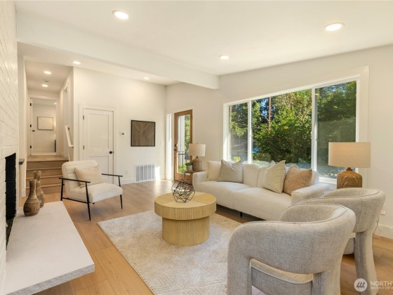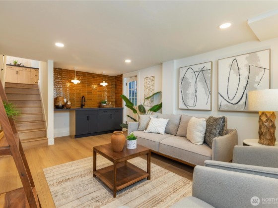 Updated stunner in the heart of Richmond Beach, just one block from Saltwater Park & mins to DT Edmonds! This chic 3 bed 2.75 BA home lives large! Featuring an airy layout w vaulted ceiling swept in natural light. Sleek brand new kitchen flows into dining w seamless access to the expansive back deck. Lower offers bonus space to relax complete w wet bar & easy access to expansive yard. Upstairs, primary suite boasts a spa-like ensuite w oversized shower, dbl vanity, built-ins plus walk-in. Outside offers a serene setting, freshly landscaped. One-car drive through garage—ideal for parking or reimagined as a gym, studio or bonus space that flows outdoors. Prime location w permitted thorough updates - plumbing, electrical & so much more!