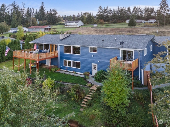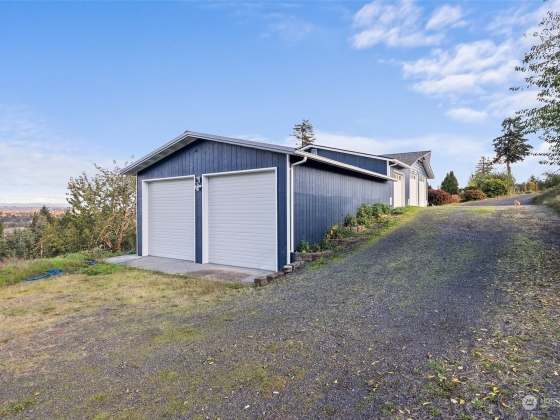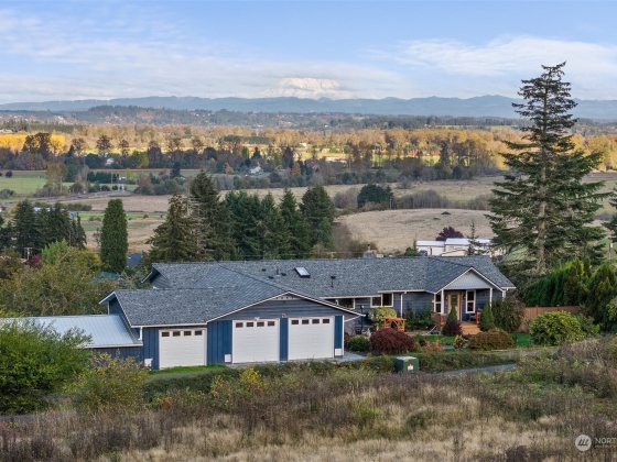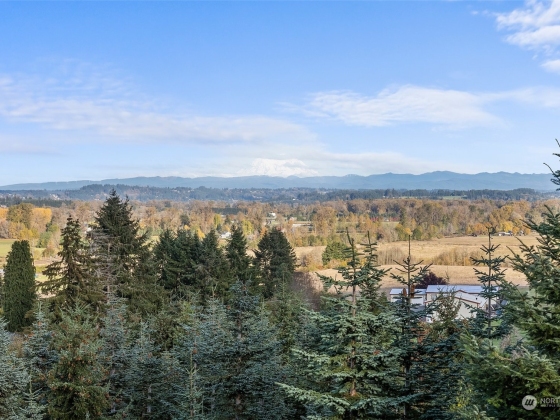 WHAT. A. VIEW! Beautiful home perched on a hill. Breathtaking Mt Rainier & valley views will never get old! Gorgeous landscaping w/sprinkler system. Amazing layout for entertaining - kitch & dining open into vaulted great room w/view windows & huge party deck. Huge, gorgeous primary w/vault & private view deck. High end kitchen w/quarter-sawn oak cabinets & huge center island and granite counters. Tastefully updated bathrooms throughout including a large primary with WIC. Family room & dry bar in daylight basement, also full bath. Fireplaces both floors. Oversized 3-car garage & 2-bay shop for RV/boat. Fruit trees & garden. Unique zoning allows for dividing to 1 acre lots or for potential RV Park development - some engineering already done.