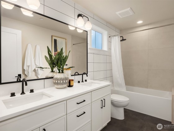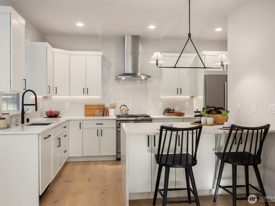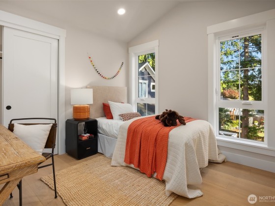 Sophisticated ease defines this brand-new cottage by award winning LNL Build, quietly set in Kirkland's prized Forbes Creek. Light-filled interiors maximize every foot of the three bedroom, two & half bath plan, pairing 9-foot ceilings with curated finishes and seamless flow. The Chef's kitchen - Wolf range, Bosch fridge, quartzite island opens to a great room for effortless gatherings. Upstairs, a spa inspired primary sanctuary joins flexible secondary suites. Enjoy a covered arrival, lush, sculpted gardens, an attached garage plans guest spot with EV charger. Radiant heated and discreet in-ceiling mini splits complete this refined Eastside retreat.