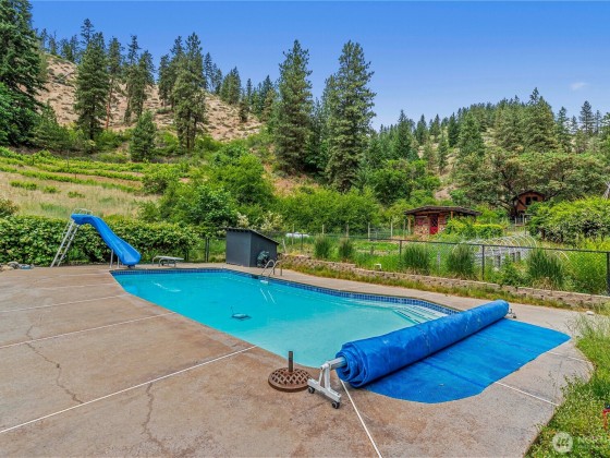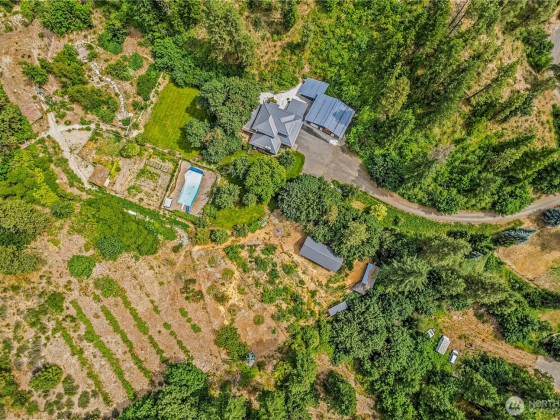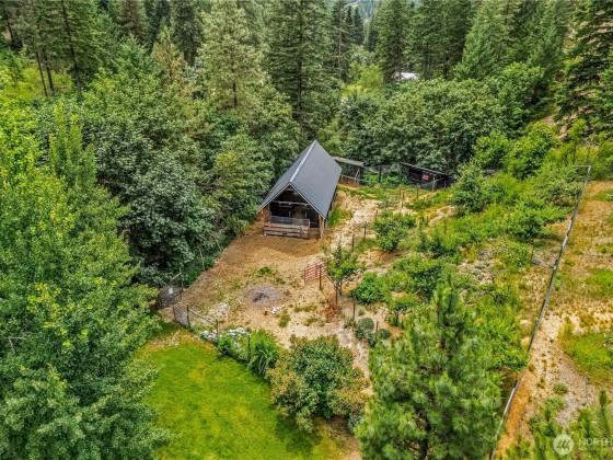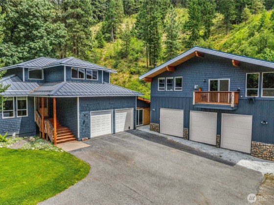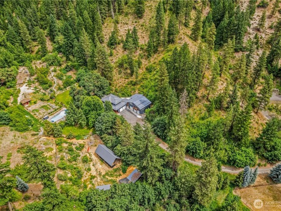 Nestled on 20 serene acres backing up to a dramatic canyon, this exceptional estate offers the perfect blend of natural beauty, privacy & modern comfort. Located just minutes outside of downtown Leavenworth, this home features a true chef's kitchen, open living areas, fireplace(s), wine cellar, attached workshop and relaxing sauna. Light and bright apartment with vaulted ceilings and large living space. Spectacular 1,200+ sq ft garage / shop with parking for 6+ vehicles, workshop, boat parking and more. Take a dip in the pool, tend the garden, roast s'mores around the firepit or just relax in the whimsical treehouse. Main house 2,391 sq ft / DADU 1,137. Tucked away, yet close to it all, you will fall in love with this enchanting property!