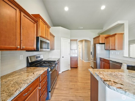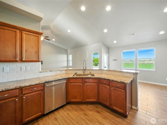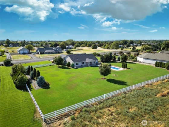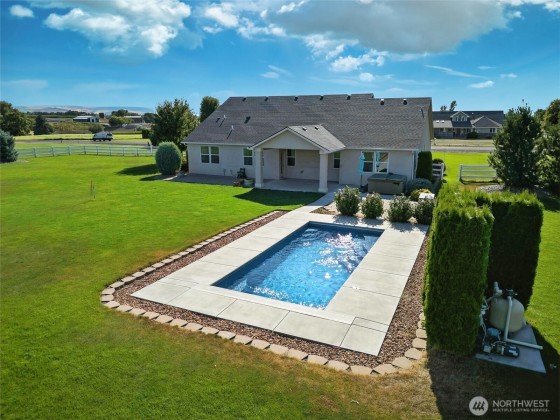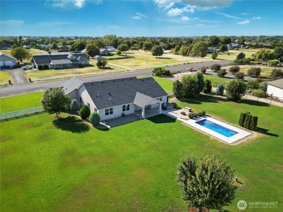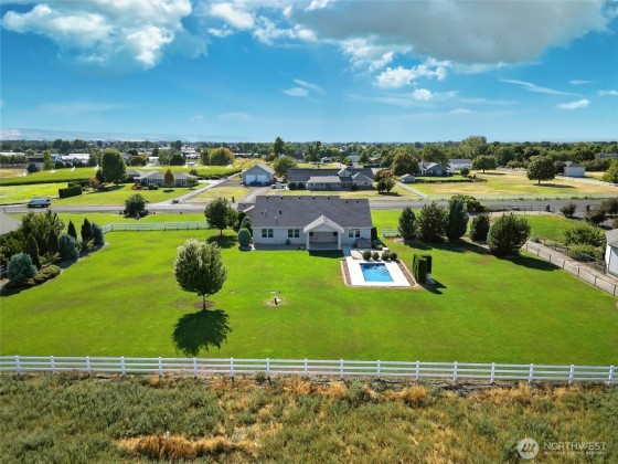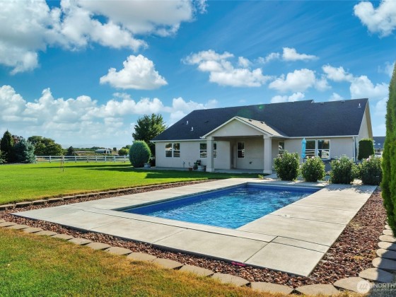 Live your dream in the beautiful Walla Walla Valley in this custom-built, single-level home offering breathtaking panoramic views of the Blue Mountains. Enjoy peaceful living in an upscale neighborhood, with no HOA, a beautifully landscaped yard, and a sparkling saltwater pool. Perfect for entertaining, the covered patio is ideal for outdoor dining & gatherings. Inside, you'll find quality craftsmanship & thoughtful design throughout, including a great room with vaulted ceilings, & kitchen featuring granite counters, walk-in pantry, stainless appliances & conversation bar. Primary bedroom boasts luxurious ensuite and massive walk-in closet. A spacious 3-car garage provides plenty of storage. This is the lifestyle you've been waiting for!