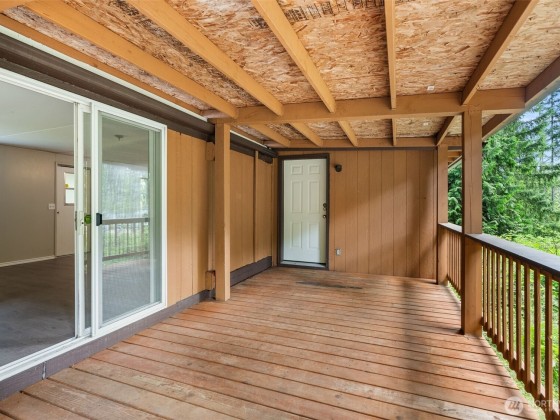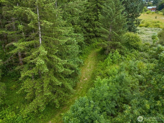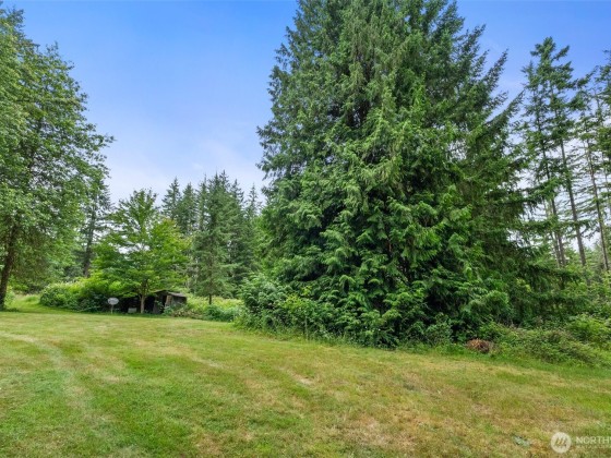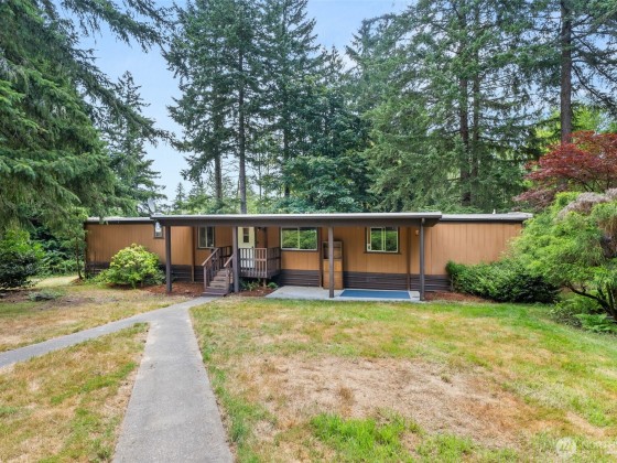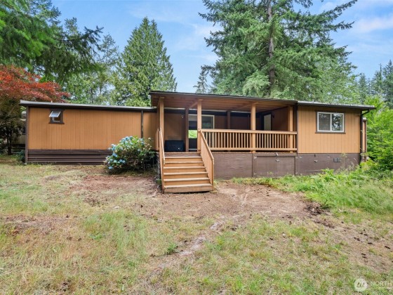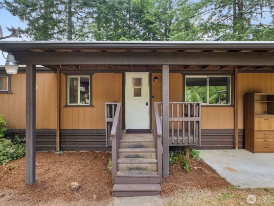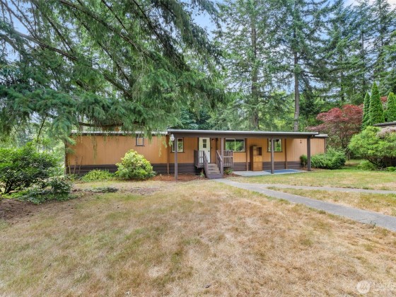 Enjoy the serenity of rural living on nearly seven acres of mostly wooded land, just 3 minutes from I-5. This peaceful retreat features a charming 2-bedroom, 2-bath home with a bonus room—perfect for crafts, canning, or a workshop. New flooring and fresh interior paint brighten the open-concept living area. Relax on the large covered back deck, or explore the 3/4-mile cleared pathway through the trees. A second home on the property offers potential as an ADU, office, or storage—or remove it for your own vision. With 2 electric meters and 2 septic tanks, this versatile property offers many possibilities in a prime location.