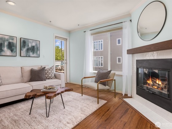 Super charming, updated top floor unit in lower Queen Anne. The city is at your fingertips…take in Storm or Kraken games, Bumbershoot, KEXP at Seattle Center or take a quick walk to downtown, the waterfront, and light rail. You’ll never run out of amazing shops and restaurants to try in this cultural hotspot. Practicalities and amenities abound including an assigned parking space in secure garage, storage space, and shared roof deck with sweeping views of the Space Needle, downtown, and Puget Sound. Spacious in unit laundry room with washer and dryer plus storage. Sweet private balcony to watch the sunrise, and a gas fireplace for cozy evenings in. Treat yourself at Nielsen’s Pastries, a Queen Anne institution, right downstairs.