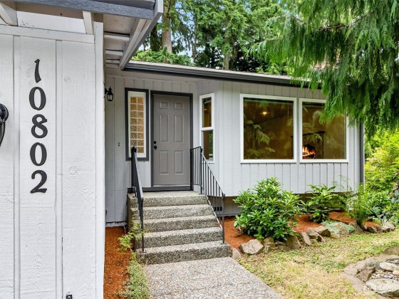 Beautifully updated tri-level home with a cul-de-sac lot and total privacy. Move-in ready condition. Gorgeous Brazilian hardwood floors in the living room with marble fireplace. White kitchen cabinets with stainless steel appliances. Remodeled main bathroom with a newer tub/shower. The lower-level rec room features a gas stove and slider leading to a private, wooded backyard. New roof 2021, new windows and exterior paint in 2022, new hot water tank in 2024, new carpet in 2025, and recently replaced gas furnace. There is a 2-car garage and RV parking. Prime location near Silver Lake, I-5, Costco, and Mill Creek Town Center. One block to James Monroe Elementary School. This one is a must see!