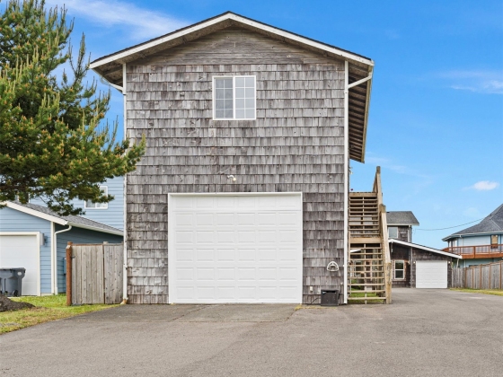 This exceptional property boasts a DETACHED 660 sq ft SHOP w/ a 1-BEDROOM APARTMENT PLUS an EXQUISITELY RENOVATED MAIN HOME overlooking the TRANQUIL OCEAN DUNES. Main home features an attached garage + beautiful contemporary style with ALL NEW flooring, windows, millwork, doors, paint, kitchen & baths! Fantastic kitchen w/ 6-burner gas range, SS appl. & gorgeous countertops. Baths w/ custom tile, heated floors & quartz. Large bonus room + kitchenette on main. Soak in the protected natural beauty of the dunes in w/ a window wall lining the flowing living, dining & kitchen area upstairs. Detached shop has 2nd W/D + Apt. w/ private entrance & deck w/ peek-a-boo ocean views. Pantry. Gas fireplace. Concrete patio. Paved drive w/ tons of parking.