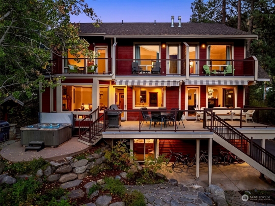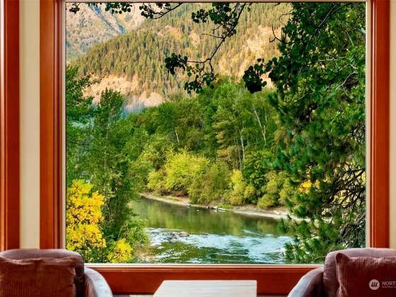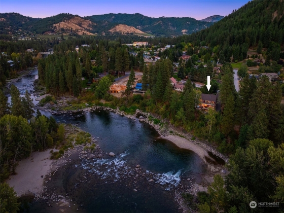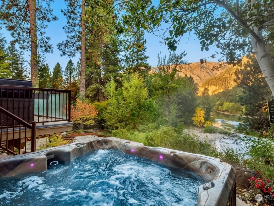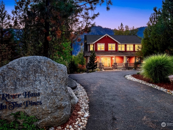 River Haus in the Pines on the Wenatchee River that includes a sandy beach and a great swimming hole. Enter to hardwood floors, large living room w/gas fireplace & access to the deck overlooking the River. Enjoy an inviting gourmet kitchen with large island/prep sink, butlers pantry & second living with propane fireplace, office/studio & access to deck. Upstairs ~ 4 ensuite bedrooms all with/private decks, views & full baths including coffee bar & Laundry (3 with gas fireplace). Lower level ~ a theater room, storage, bath & bedroom that allows access to Patio through sliding doors. Natural terraced landscaping, Traeger, Hot Tub, electric awnings, paved driveway, large 2 car garage Owner will entertain a contract at 5% interest.