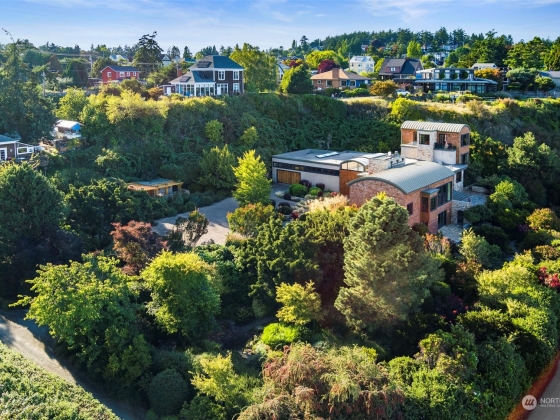 Creative, multi-use, architect designed home w/mountain, city and shipping lane views on 6 city lots set in extensive gardens. Private, yet adjacent to downtown and Uptown Port Townsend, this home is ideal for the work/live lifestyle, especially for large projects. Several meeting spaces, multiple office options, entertaining and fundraising possibilities; Home awaits creative vision. Well designed home w/fine finishes using Port Townsend's top artisans; home is well served for multi-generational living. Fully functional remodeled historic tower provides unique living, dining & sleeping. Lower floor is multi-use theater/recording/presentation area w/separate facilities/entry. Potential single family, multi-family retreat or foundation.