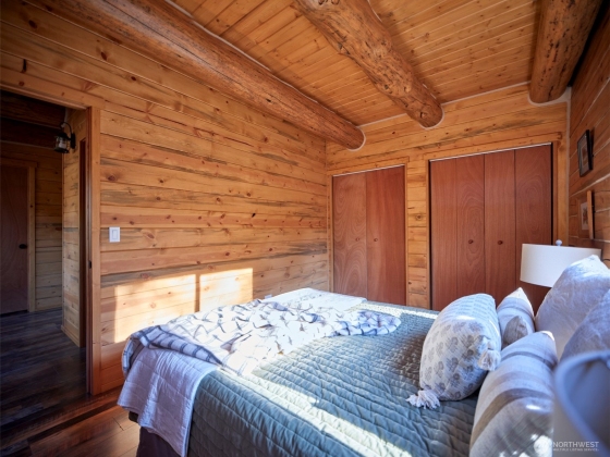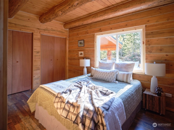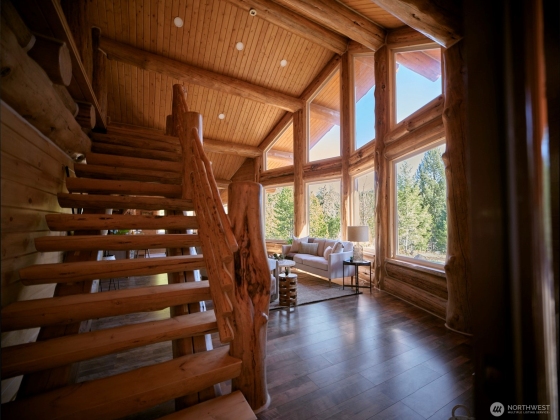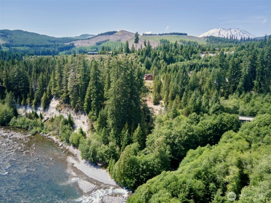 Captivating custom log home with exceptional craftsmanship & sublime setting on 202' of Lewis River frontage just outside the Gifford Pinchot National Forest at the base of Mt. St. Helens! Using a sustainable building approach w/refurbished logs this cabin showcases beauty & innovation. Oriented to capture the River views, light pours in w/an abundance of windows & soaring tongue & groove Pine ceilings. Exposed log beams throughout. Primary bed on main & 2 beds upstairs w/loft area looking out to the River. Beautiful deck off dining rm to enjoy the view, outdoor meals & the sounds of Pine Creek. This magical property is accessible yr round & is move-in ready. Enjoy your very own 5 AC off grid paradise in this enchanting corner of the world!