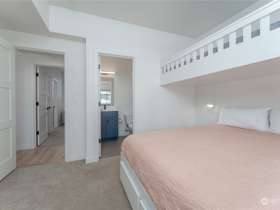 Like new & meticulously maintained 2 bed 2.5 bath Home + Carriage House which comfortably sleeps 7! Light & airy main home offers 1092sq' of living space w/ 2 spacious suites, pocket office, vaulted great room, gas fireplace, & 366sq' of covered deck space! Carriage house offers an additional 286sq' of living space including bonus room w/ queen murphy bed, kitchenette, & 3/4 bath providing tons of use flexibility & increased SHORT TERM RENTAL potential. Tons of parking + 384sq' garage providing additional "flex" space & storage! Shy 1400sq' total living comes fully furnished turnkey! A unique package at an exceptional value! The Lookout offers community WF w/ sandy beach, marina, parks, pools, playgrounds & on-site management & hospitality!