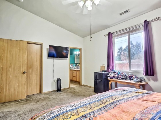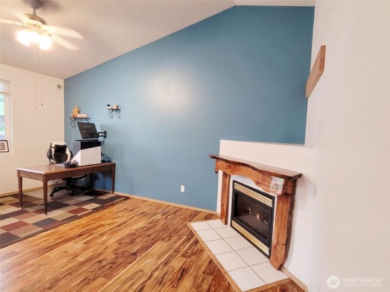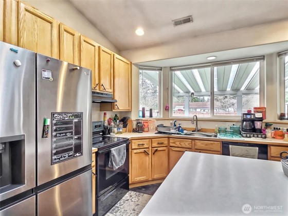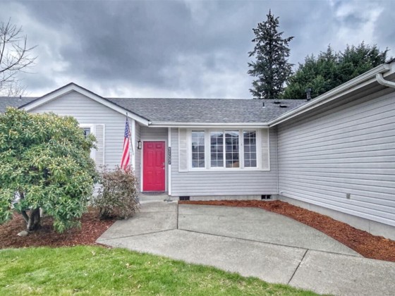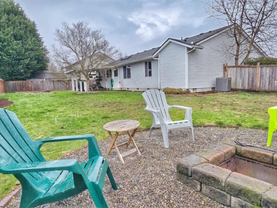 One of the largest lots in the community, this rambler has it all! Vaulted ceilings w/tons of natural light in the living and family rooms, freshly painted. A custom live-edge mantle over the fireplace. An expansive kitchen w/ a 2024 fridge, ample counter space and cabinetry, that overlooks a generous backyard with a covered patio and fire pit, ideal for outdoor gatherings. Huge primary with 5-piece bath and walk-in closet, plus 2 well sized bedrooms for comfort and a separate office. Situated in a coveted cul-de-sac, with a view of Mt. Rainier, and walking distance to schools! Extras include smart sprinklers and garage door opener, ADT, and HVAC serviced 2025.
