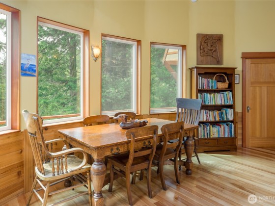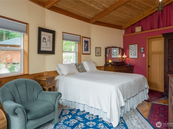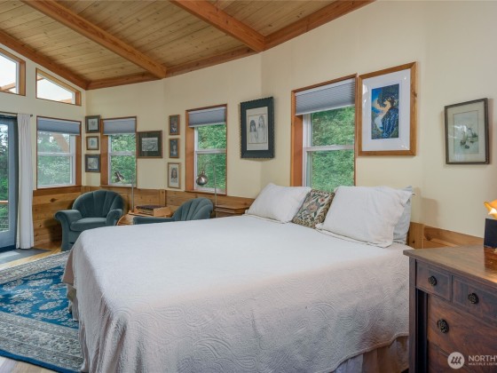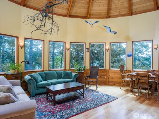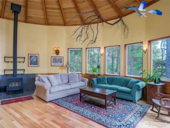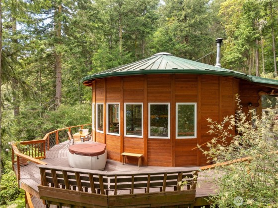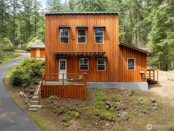 This lovingly crafted waterfront home overlooks Shoal Bay on Lopez Island and glows with artistic touches. Relax in the sunny, open great room of the 2204 sf main home. The lower level studio consists of a kitchen w/open living/sleeping area, 3/4 bath, outdoor shower, private deck, and separate entrance. The shop and guest suite, w/ sitting area, sleeping platform, 3/4 bath, and its own deck with water views, provides another 740 sf of finished space. Great well and water system with new pumphouse, backup catchment system, metal roof, irrigated garden, wood stove, radiant heat in entry and main bath, hot tub, Trex decking, yurt, a huge erratic boulder, and more. Convenient location on a secluded, private parcel .75 mi from the ferry.