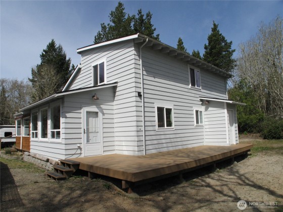 HUGE PRICE IMPROVEMENT FOR ACREAGE ON THE PENINSULA!!! Dream Coastal Retreat in the Heart of Nature! Beautiful remodeled 2Bd, 1.5 bath home, nestled on 10 acres invites you to explore endless possibilities-gardening, hobby farm, or simply enjoy abundant wildlife and nature. New Solar System saving up to 75% off your electric bill, along with a private well and septic system makes your bills practically non existent. New roof & windows in 2021. Charming wood beams creating that lodge feel throughout, with New Quadra Fire 1600 wood stove to knock off the chill. Cook up a storm in the inspiring chef's kitchen, unwind in the enclosed sunroom, or BBQ on the newly painted deck. RV pad, fruit trees, & outbuildings craft the ideal rural lifestyle!