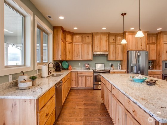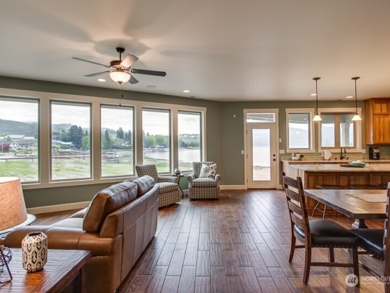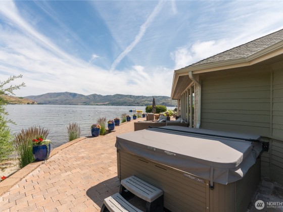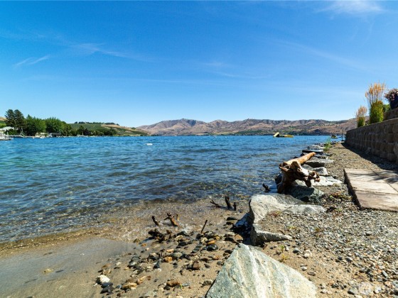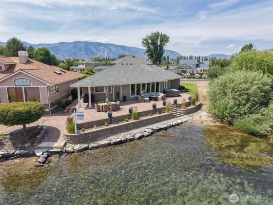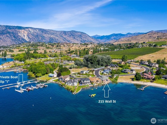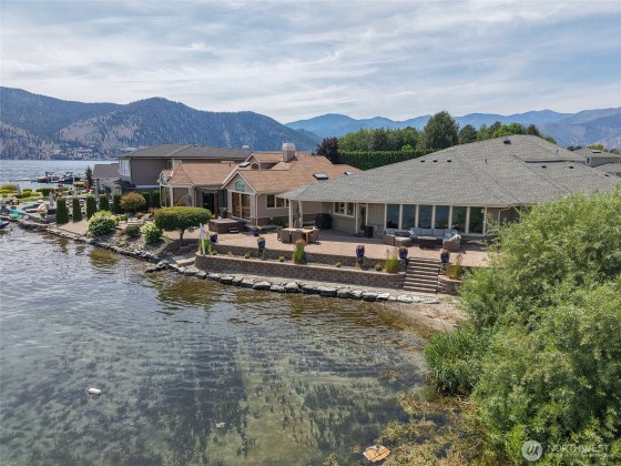 Stunning waterfront home on the sunny north shore of Lake Chelan located in a private cove of Mill Bay! This newer 4-bed, 4-bath home is in excellent condition & lives nicely as a rambler w/ a spacious open concept layout, abundance of lake facing windows, & high-quality finishes throughout! Enjoy breathtaking views, a gorgeous paver patio, & low bank walk in sandy beach waterfront! In addition to the 80' of WF is a private boat slip in recently updated dock system. Home comes fully furnished w/ high-quality furnishings, wood grain tile floors, beautiful cabinetry & granite counters, & spacious bonus room w/ full bath & custom-built bunk beds which functions nicely as the 4th bedroom! Bordering year-round creek adding a ton of privacy!
