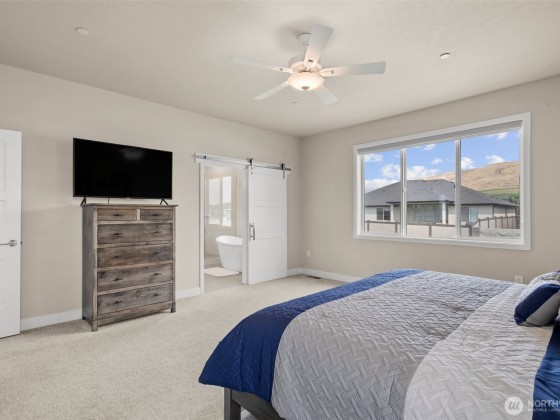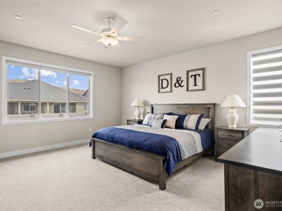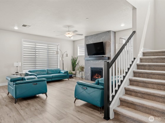 LIKE NEW!! A spacious 4-bedroom, 2.5-bathroom home spanning 2825 square feet, featuring a home office, an open floor plan, and additional living space on the second floor. The main level has an upgraded custom tile fireplace that spans from floor to ceiling. The primary bedroom has grand barn doors leading into the massive en-suite.The property boasts a large 3-car garage ideal for a home gym, mature landscaping with underground sprinklers on irrigation, and a concrete fence for added privacy and RV parking concrete slab. Situated near the charming Country Mercantile, the neighborhood offers scenic walking paths and convenient access to major freeways.