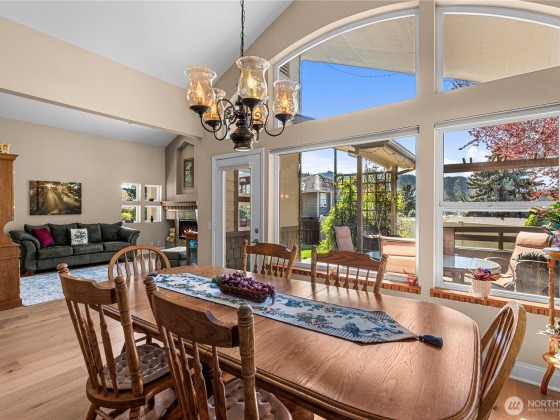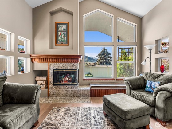 Nestled in Cashmere, this charming home captures stunning mountain and valley views in a peaceful neighborhood setting. Thoughtfully designed with vaulted ceilings in the dining and living rooms, engineered hardwood floors. This home is filled with an abundance of natural light and warmth. Granite countertops in both the kitchen and bathrooms add elegance, while a built-in hutch in the dining room and marble-surround fireplace add unique character. Enjoy quiet mornings or relaxed evenings on the large covered deck or welcoming front porch. Located near Riverside Park and the Cashmere Museum & Pioneer Village, and just moments from Milepost 111 Brewing Company, this home offers a seamless blend of comfort, design, and natural beauty.