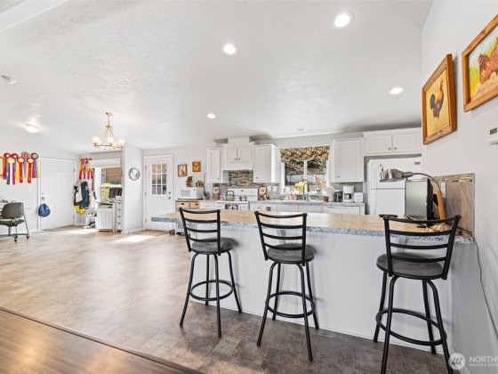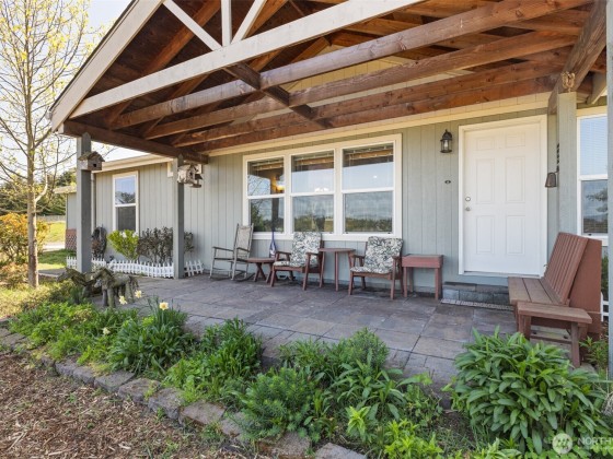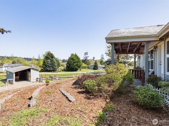 Beautiful and bright home with extensive upgrades and vaulted ceiling. Spacious open concept 2bd, 2ba home. Kitchen has a large breakfast bar and walk-in pantry with extra space for an office or den. Desirable layout has split floor plan with primary adjoining bath and walk-in closet. Guest bedroom and bath. Sit on the large covered front porch enjoying the view of the valley below, amazing sunsets, and wildlife. The separate studio/shop is insulated with power. The fully fenced property includes barns for livestock, goats, and chickens. Country living in a quiet and friendly neighborhood close to town and less than a mile from the Dungeness Wildlife Refuge with scenic trails and beach access.