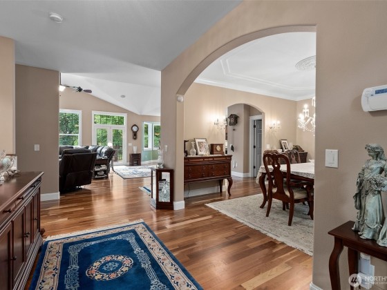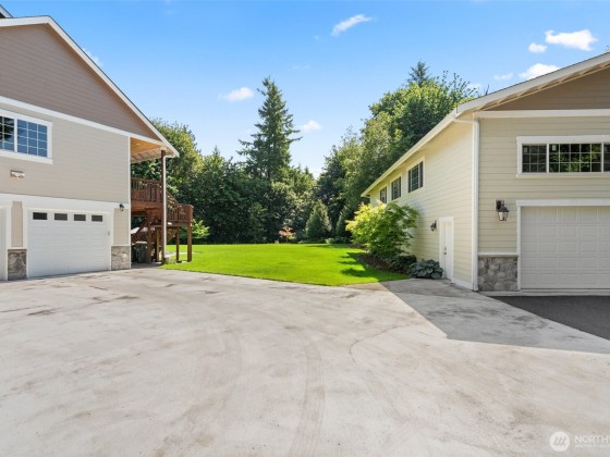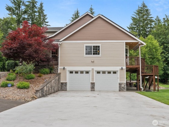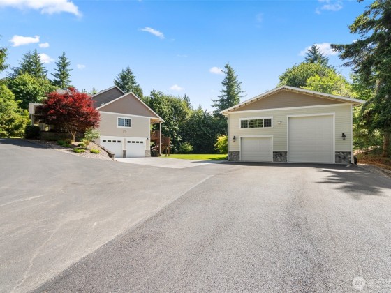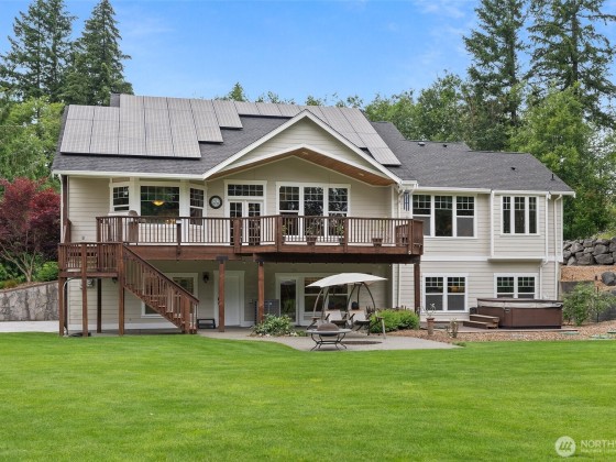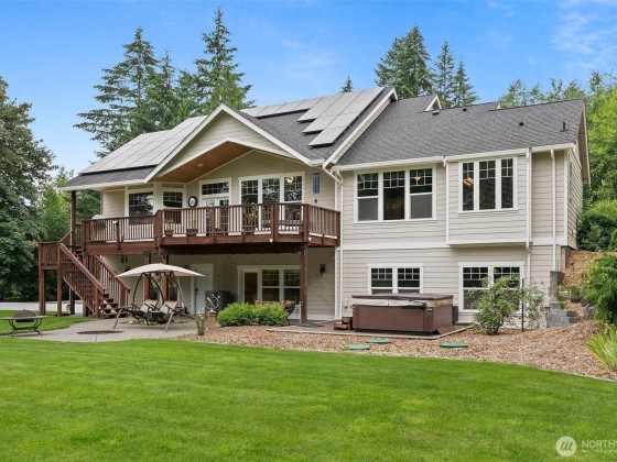 This stunning 5.9 acre property has something for everyone! Just shy of 4000 sq ft, this beautiful home features vaulted ceilings, hardwood floors, a gas fireplace, central vacuum & so much more. The large windows bathe the interior with natural light. The well-equipped kitchen includes a butler's pantry, an island with separate pot-sink and an induction range. The lower level features a mini-kitchen with sink & dishwasher, a dedicated wine cellar & heated floors in the bathroom. Enjoy sustainable living with a 9.8 KW solar panel system & generator. Outside you'll find expansive decks & patio areas including a fire pit. 35'x60' 3 bay, insulated shop with a large 2nd level loft, perfect for additional storage or hobby area. Tumwater Schools!