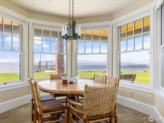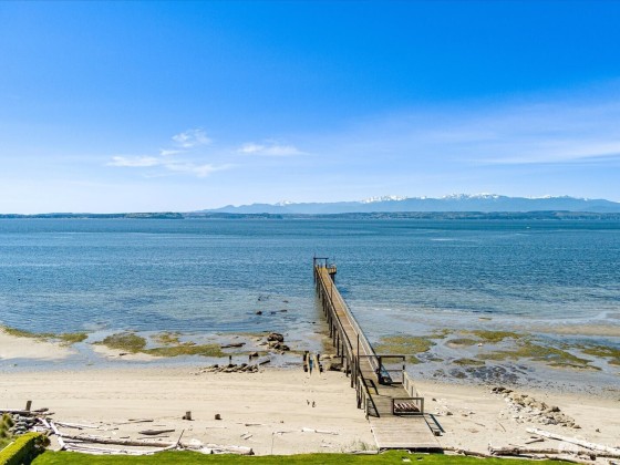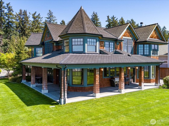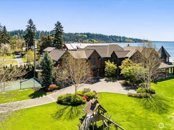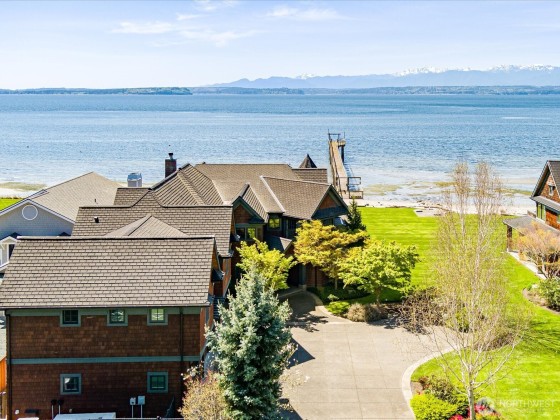 An exceptional waterfront estate on Mutiny Bay where sophistication meets serenity. This private half acre, offers 73 feet of premier sandy beachfront, a private dock with moorage, and panoramic views of the Sound and Mountains. Inside, an elegant open floor plan features expansive chefs kitchen, two great rooms, five en-suites, a theater room, and refined finishes throughout. Gated entry, lovely landscaping, a sport court, and seamless indoor/outdoor living, complete this rare island offering.