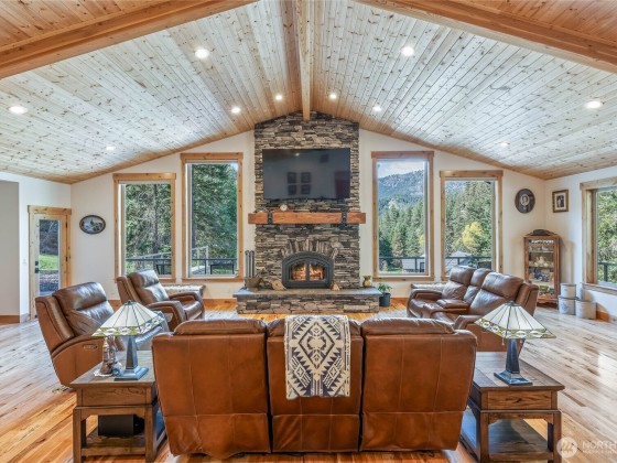 Situated on over 5 acres, this custom-built mountain retreat offers refined luxury, sweeping views & unmatched versatility. Crafted with meticulous detail, the home boasts soaring vaulted ceilings, a grand great room with wood-burning fireplace. The gourmet kitchen features a large center island, high-end appliances & TWO walk-in pantries. The main-floor primary suite is a serene escape, complete with a walk-in closet, radiant heated floors, spa-like ensuite w/soaking tub & custom-tiled shower. A 2nd primary suite upstairs provides accommodations for guests/multi-generational living. Lower level includes a separate living area and VRBO rental history. Transferrable STR permit offers rare investment potential in a highly desirable location.