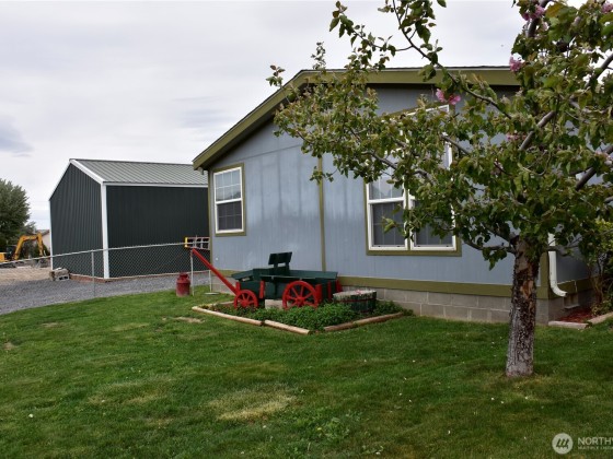 Discover the perfect combination of comfort and functionality with this beautifully maintained double wide home, featuring a large, 30'x30' detached shop — ideal for hobbies, storage, or a small business. Nestled on a generous lot, this property boasts breathtaking views of the lake, providing a serene backdrop for everyday living. The open concept welcomes guests for all occasions and leaves plenty of room to gather around the fireplace on chilly evening. The large covered patio is great for BBQs and the fenced yard is great for any furry friends. Three bedrooms and two full bathrooms, big primary bedroom with sitting area and a soaker tub in the bathroom, and so much more. Don't miss your chance on this gem.