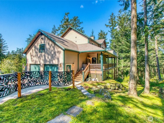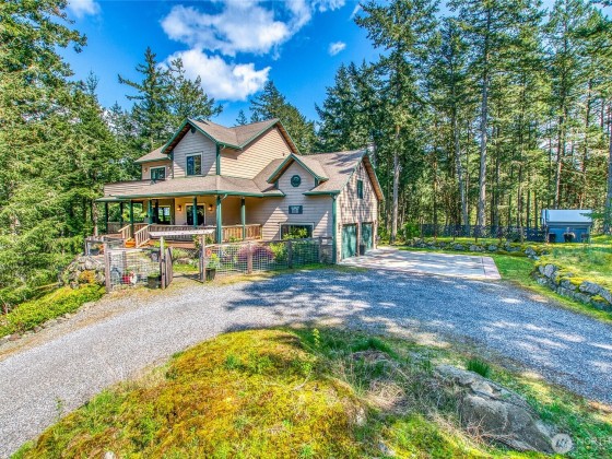 Located in quiet neighborhood on west side of Orcas in one of the most desirable neighborhoods, Spring Point, near Deer Harbor Marina, dining, public waterfront. The home is settled among native Madrona, Fir, Maple trees w/peek-a-boo views of Turtleback, Waldron, Mt. Baker, Canada. Property enjoys amenities of Spring Point: common beach area/dock, paved roads, easy walking. Main bedroom ensuite, 2 guest bd/ba on 2nd floor w/french doors to upper deck. Gourmet kitchen/formal dining/living room/office on main level + wrap around covered porch. Plenty of built-ins and walk-in closets. Media/bonus room w/wet bar. Basement with studio kitchen/bd/ba. Attached 2 car garage + detached 3-bay garage w/1 bd/ba AdU with opportunity for rental income.