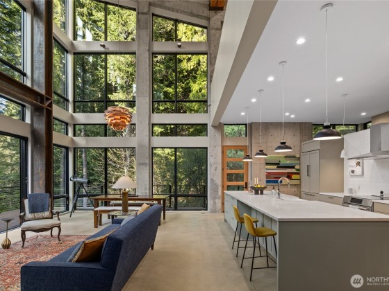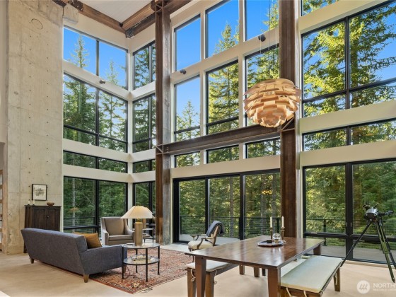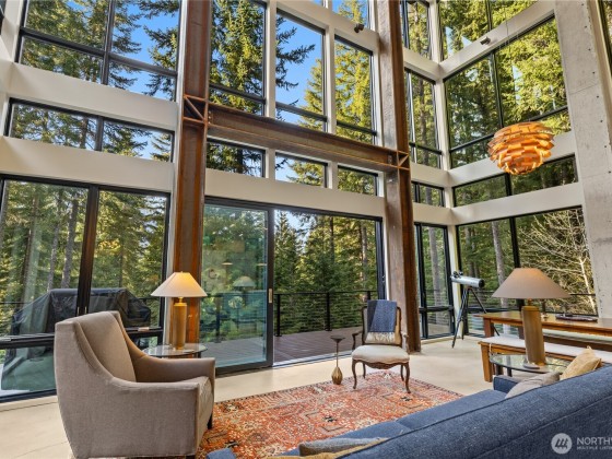 Live among the trees in a Stunning Woodland Retreat. Step into a breathtaking architectural masterpiece nestled in the woods near Lake Kachess.Soaring 34 ft ceilings with dramatic walls of glass create a light-filled sanctuary that feels like a luxurious treehouse. Bordering public land with rare, private access, this home offers a level of serenity and seclusion that is unmatched. Enjoy panoramic forest views from nearly every room, blending indoor living with the beauty of nature. Main home featuring 3 spacious bedrooms, while a separate guest quarters above the garage offers privacy and flexibility for visitors. Whether you’re entertaining or simply unwinding, this home surrounds you with peace, beauty, and a one-of-a-kind lifestyle.