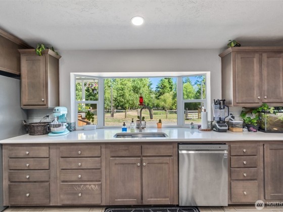 Set on 9.89 ac, this equestrian-ready property offers space, privacy, and flexibility just minutes from Costco, Fred Meyer, and dining. The 2,664 sq ft main home has 4 bd, 3.25 bath, and a warm farmhouse-style kitchen at its center. The layout was designed with that classic feel throughout. Updates include a brand new roof, heat pump, and interior/exterior paint in recent years. The 2,394 sq ft FMU, built in 2019, adds 3 bd, 2 bath, and independent living. The land features a 7-stall barn, second barn for smaller animals, cross fencing, a 2 car shop/detached garage and room to expand. Tumwater schools. Ideal setup for multigenerational living or anyone needing space for horses and livestock.