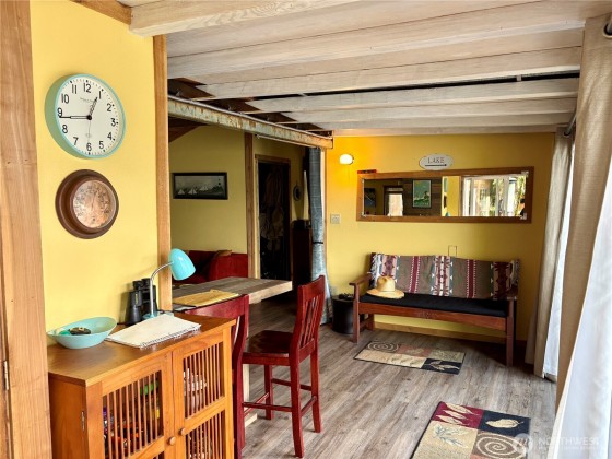 Lake Cavanaugh North Shore Cabin 61’ of sunny lakefront with your own private dock! This is the perfect getaway to enjoy true lake life. The cabin features a cozy living room with propane fireplace, kitchen with stove/range and refrigerator, plus a finished room currently used as a bedroom and an additional storage room. Step out from the living area or bedroom onto the deck overlooking the water and rolling green mountains. Extras include an outdoor shower, electronic toilet (no septic installed), and an outbuilding for storage or potential guest space. A back lot across the street with a grandfathered outhouse is included in the sale, space for parking and future potential. Seller financing negotiable.