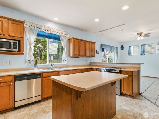 This beautiful 4-bedroom, 2.5 bath home offers main floor living with a gas fireplace along with a spacious kitchen island. The primary suite has a soaking tub, shower, and a walk-in closet. The quiet neighborhood offers privacy, a playground and park with low HOA fees. Convenient access to HWY 16 and a short drive to Southworth ferry or Port Orchard foot ferry. This is a must see!