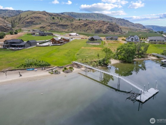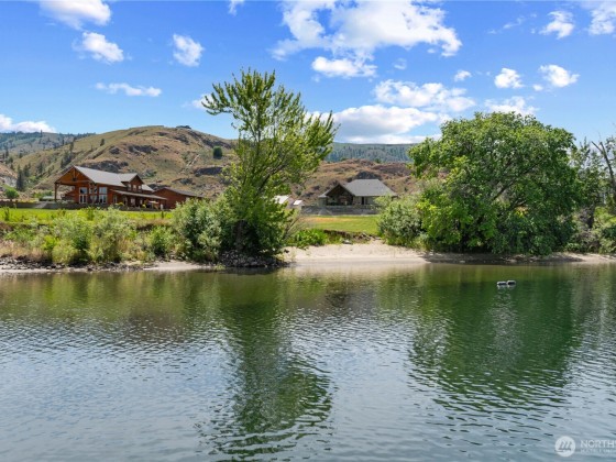 Superior Waterfront home on the Columbia River with swimmable beach and dock, on 1.26 acres. Rare private beach for you and your guests with plenty of dock space for all the toys. 2021 build has 3 bedrooms, 2.5 baths, + an office with a fantastic gourmet kitchen with quartz countertops, double ovens & 6 burner cook top. Open concept for entertaining includes a dining room and double slider doors to the generous sized vaulted patio to relax and dine in the shade. Primary bedroom has water views, outdoor access and ensuite bath. Irrigation water and automated sprinkler system make lawn care easy. Consider a pool with ADU. Septic is permitted for up to 6 bedrooms. Dual hot water tanks. Soak up the sun, slow down, & enjoy life on the Columbia!