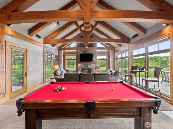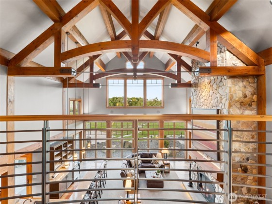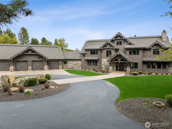 Riverbottom Ranch blends luxury and ranch living on 20.72 acres of open space and natural beauty, just minutes from town. The 6,355 sq ft Timbercraft home features cathedral ceilings with arched beams, a 2,909 sq ft garage, a 2,230 sq ft patio with outdoor kitchen, 4 bedrooms and 4 full and 2 half bathrooms. The main level offers zero-clearance access and a primary suite with fireplace, walk-in closet, and spa-style bath. Enjoy a living room with fireplace, wet bar, and wine cellar along with a separate family room. Upstairs includes 3 ensuite bedrooms, a rec room, and office. A 1,391 sq ft guest house with 2 beds and 1 full bath, top-tier equestrian facilities, 150 x 300 ft arena, and a scenic river-fed pond complete this private retreat.