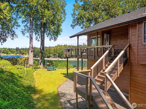 Waterfront home + 3 additional lots! This beautiful property in popular Arcadia offers sweeping views of Hammersley Inlet, 178' of deeded tidelands, & 4.66 acres of lush, private land. Built in 1994, the home is in great shape and awaits your personal touches. Perfect for Buyers seeking inspired, full-time living, or use as a 2nd home while off-setting the cost with Airbnb rentals. The acreage is comprised of 4 separate lots and grandfathers in the ability to develop each lot separately, with a main home and DADU. Sell 2 of the lots off, or develop yourself, and your home will still be surrounded by 2.08 acres. Two of the lots valued at $175K. A true legacy property, with many opportunities to force equity.