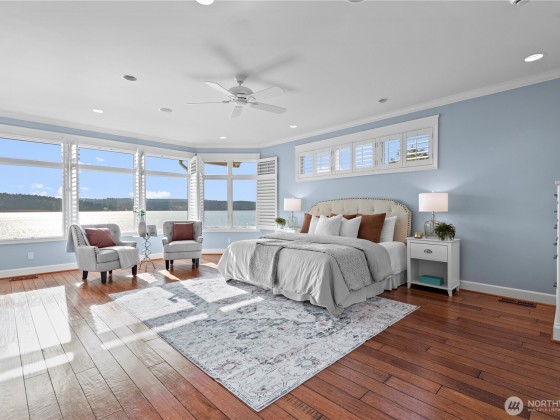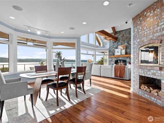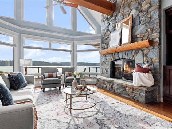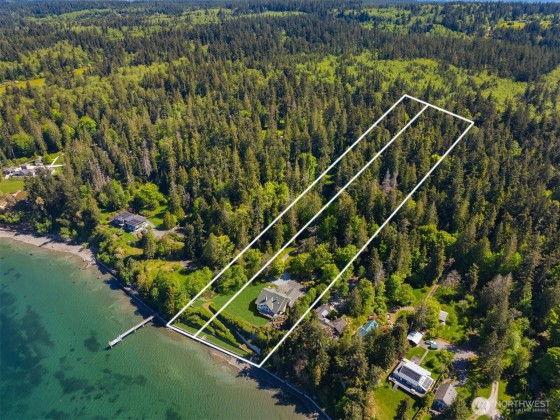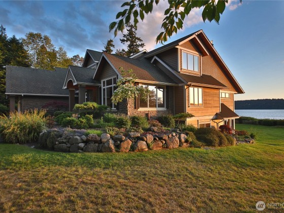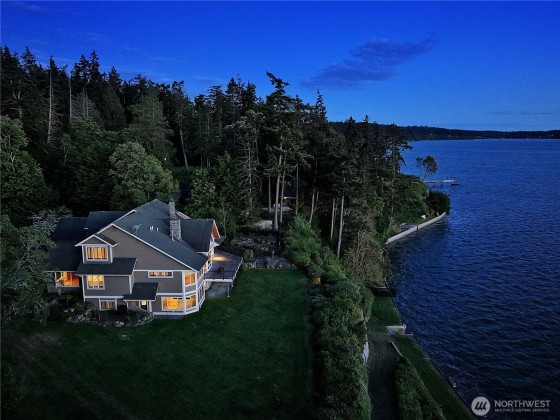 Exceptional waterfront living on 7+ acres with 254' of west-facing shoreline and jaw-dropping sunsets. This spectacular estate offers a RARE protected cove for mooring your boat at your backdoor, plus a separate waterfront building site, with expansive concrete bulkhead. This 6,000+ sq ft home enjoys sweeping views of the crystal blue water and Olympic Mountains from nearly every room. Enjoy timeless elegance with gourmet kitchen(s), main-level primary suite w/ spa bath, and flexible spaces ideal for MIL or VRBO. Launch your kayak or paddleboard from your own stretch of beach or spend hours beachcombing. A rare blend of luxury, natural beauty, and recreation. Just 7 minutes to DT Freeland.