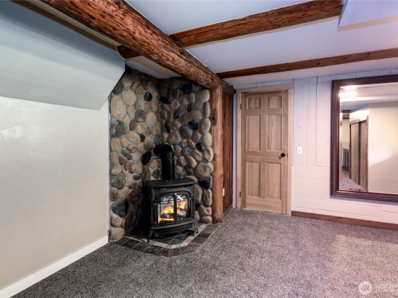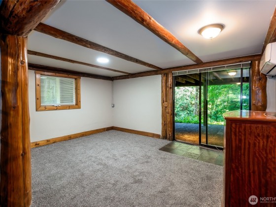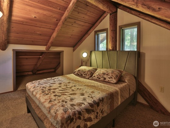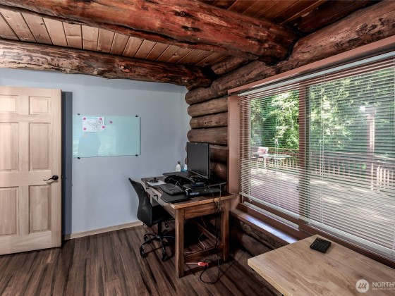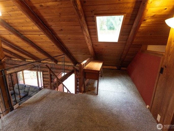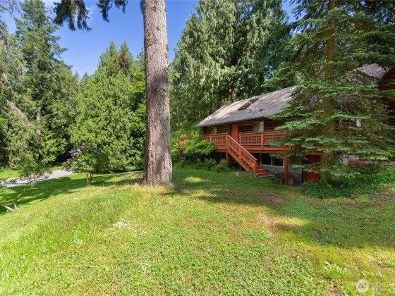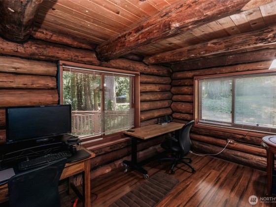 Tucked beneath a canopy of majestic old growth trees, this log home offers serenity just minutes from some of the best walking trails around. Wake up to the gentle murmur of a stream winding through your backyard & fall asleep to the rustle of the wind in the trees. Inside, you’ll find warm, woodsy interiors full of character. The open concept living, dining room & kitchen is warmed by a wood stove. The lower level offers independent space w/ a kitchenette & ¾ bathroom. Whether you’re sipping coffee on the porch or crafting your next masterpiece in the spacious shop, this property invites you to slow down & breathe it all in. It’s more than a home, it’s a lifestyle filled with fresh air & the kind of quiet you didn’t know you were missing.