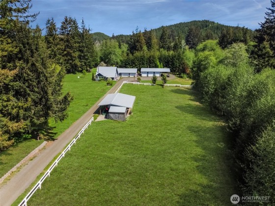 $50 K REDUCTION! Fantastic 24 Acre Property on Smith Creek (apx 870' frontage) for outdoor enthusiast or just living in peace & serenity. Spectacular site that must be walked to appreciate. It sells itself. Throughout the year you'll see salmon, deer & elk! Quality House is well maintained & updated. More space than it appears. Den can be 4th bed. 4 baths. Real cozy living rm w/ wood stove & new brick. Lots of new flooring & paint. New metal roofs on every outbuilding. New Gutters/downspouts w/ drainage sys. New windows. Skylights. Nice Appliances. Lg guest space or multigenerational w/ sep entry. Fish & hunt on property. Property all fenced. Lots of outbuildings; 5 car Gar, Huge shop w/oil pit, storage++, Big 4 Stall Barn w/ electricity.
