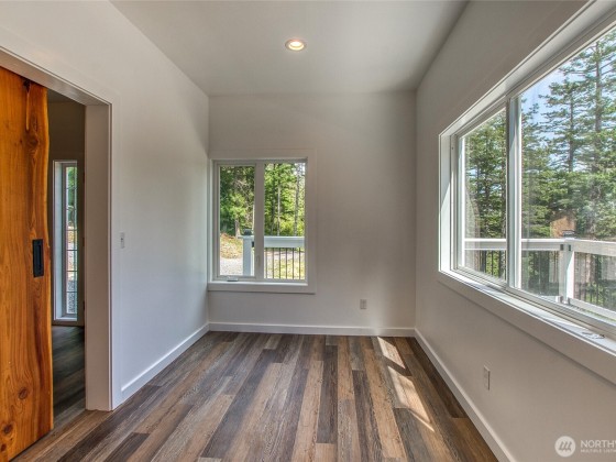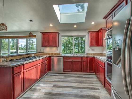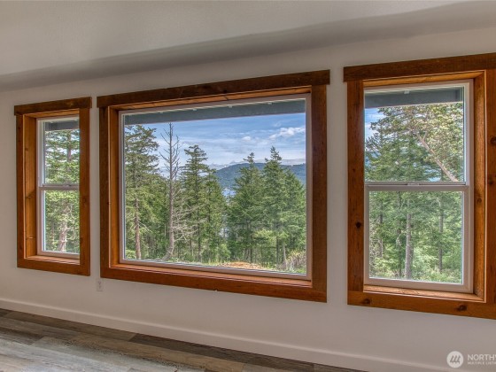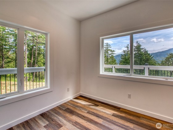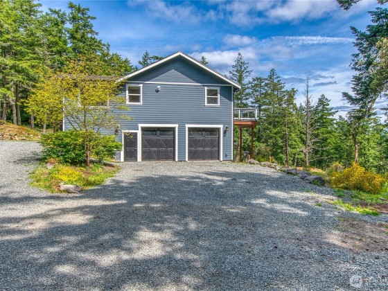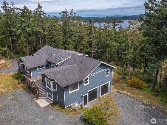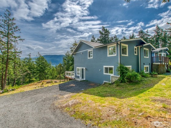 Enjoy eastern views toward Buck Mountain and Mount Constitution from this sunny, spacious home. Main level living, including a primary bedroom with ensuite bath and walk-in closet, a second bedroom, full bath, and a flex room perfect for an office or gym. Light-filled living and kitchen areas open to a generous deck-perfect for relaxing and entertaining. Enjoy a walk-in pantry, laundry room, and half bath just off the kitchen. The lower level offers flexibility with a separate entrance, two additional ensuite bedrooms, full kitchen, living room, office, and a second deck. Garden space, water views, and seclusion complete this multigenerational-friendly property with an attached 2 car garage. Bonus, golf course is close by. Seller financing.