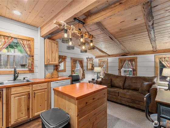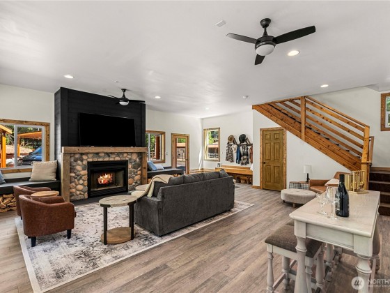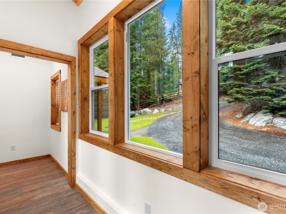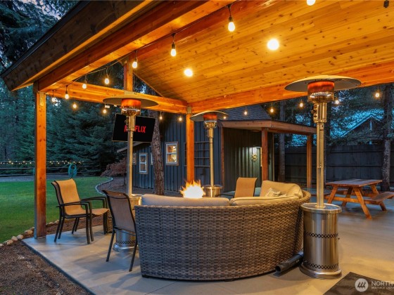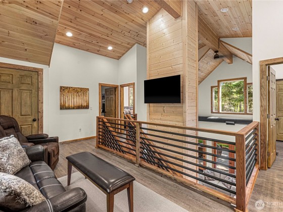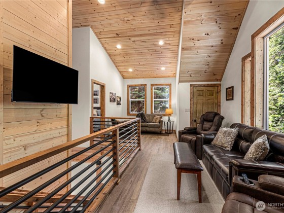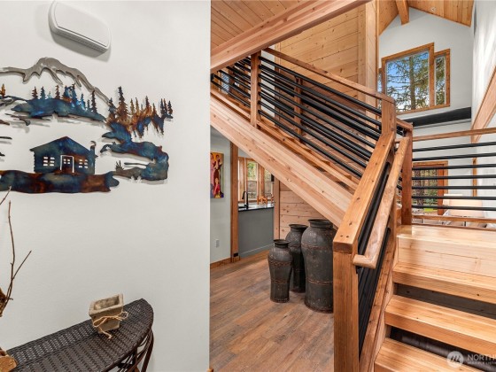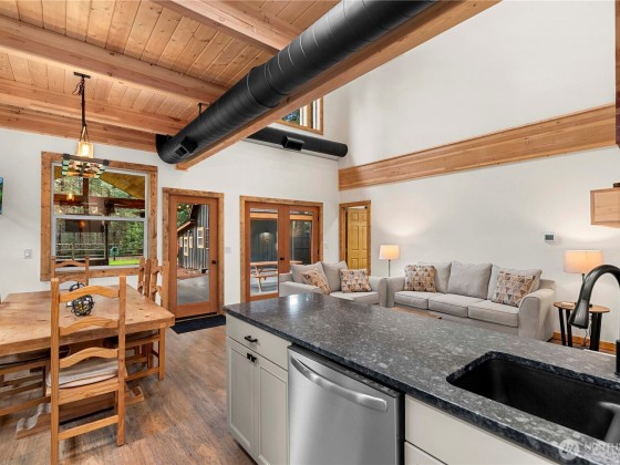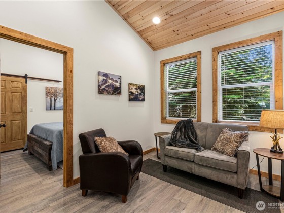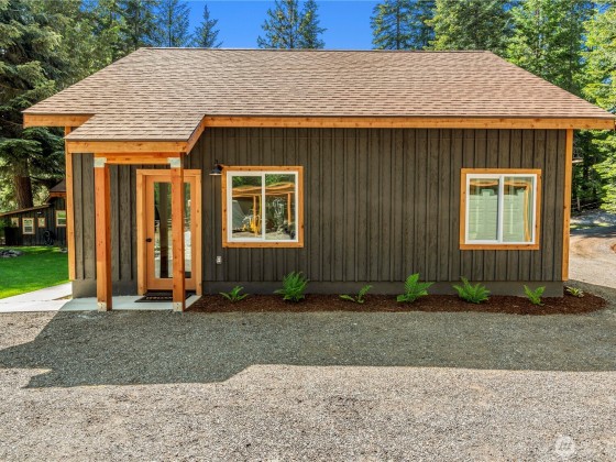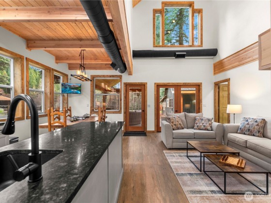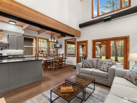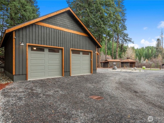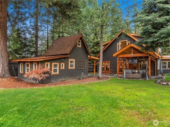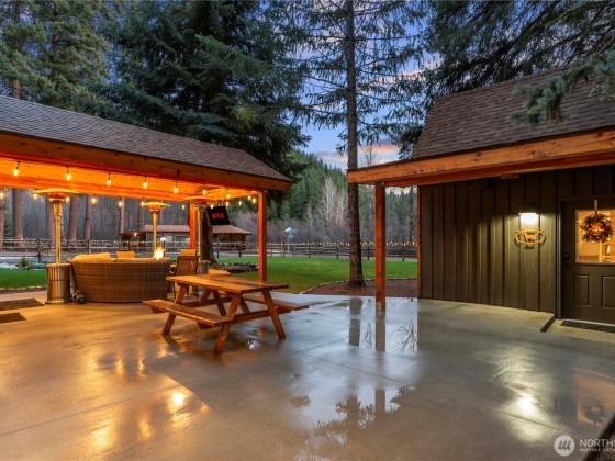 Furnished Mountain modern retreat offers a perfect blend of rustic charm & contemporary luxury. Set on 1.86 private acres w/access to trails & snowmobile routes perfect for recreation. The home boasts 3,294 square feet, 3 bedrooms, 2.5 baths, great room, wood burning fireplace & bonus loft area plus a detached 2-car garage w/office space. A cottage with 3/4 bath & laundry for extra guests. Amenities include wine fridge, stable & tack room, fencing for livestock, wired generator, auto sprinklers, Timber framed carport for extra car/tractor cover. Enjoy the outdoors & a covered patio, TV & seating, offering an inviting place to unwind in & enjoy all 4 seasons. Sold turnkey including snow blower. Minutes to Lake Wenatchee & Plain.