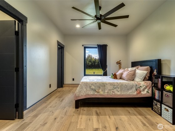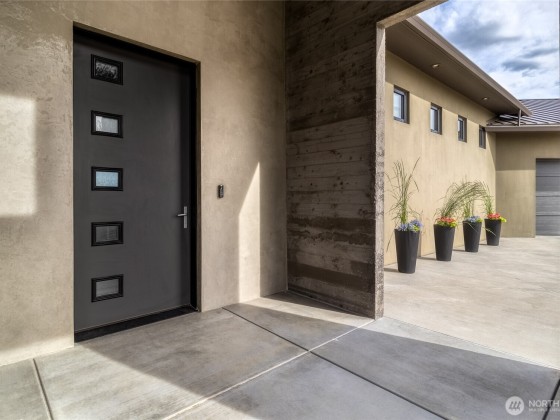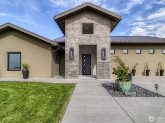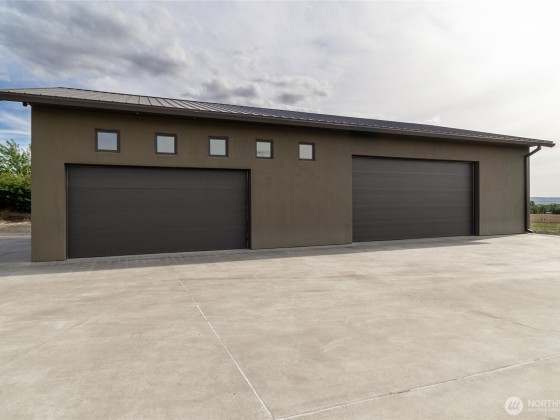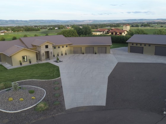 You'll appreciate the expansive view of the Blue Mountains from this elevated single-story home site. Concrete construction (ICF walls) improve soundproofing and temperature efficiency. Metal roofing ensures a roof that will last decades. There are 3 separate garages. 2 are attached to the main house and a detached 4-car garage/shop is next to the main home. The gradual sloping grassed yard to the rear is adjacent to an extensive concrete and wood (Fiburon) patio deck. A small, covered, pool/spa sits within the large patio space. The interior has 2 ensuite bedroom/baths & a large primary bathroom and walk-in closet. It also has a patio half bath. The home has engineered wood plank flooring as well as high ceilings with recessed lighting.