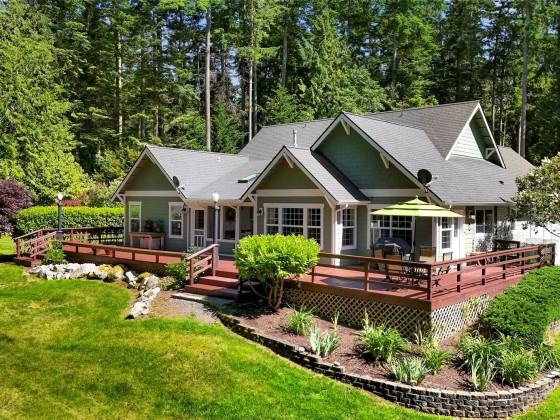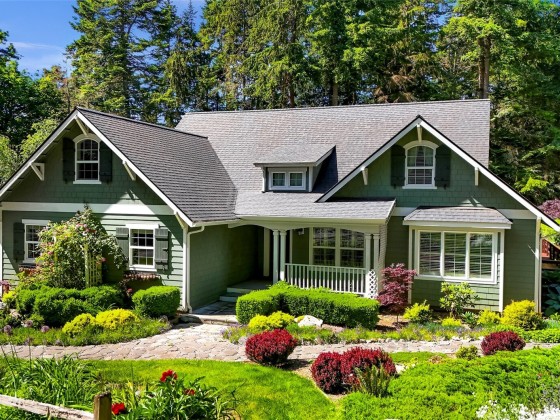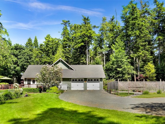 Beautiful 3 bed/1.5 bath custom home on 5.4 acres close to ferry landing. Enjoy privacy and seclusion of your wooded retreat. Over $100k in recent updates including kitchen and primary bath remodels, new whole house generator system, water filtration system, new furnace and heat pump, enclosed garden with raised beds and more! Gourmet kitchen with Blue Star gas stove, island and granite counters. Sucapira hardwood flooring in common areas and custom marble flooring in Primary Bathroom. Enclosed patio connected to Primary BR and Living room. Attached 2-car garage plus 1008 sf detached garage w/large shop with RV/boat bay and 432 sf ADU roughed-in. RV cleanup station. Private trail winds through the woods.