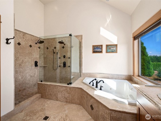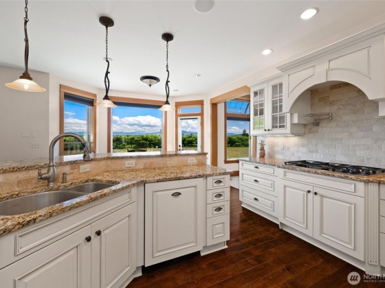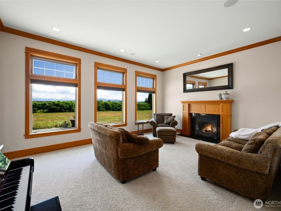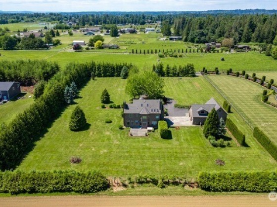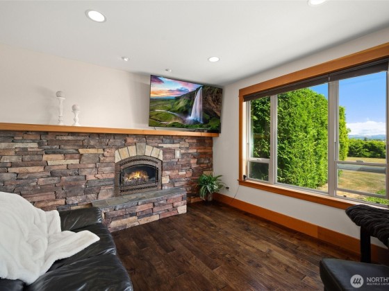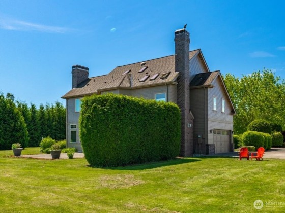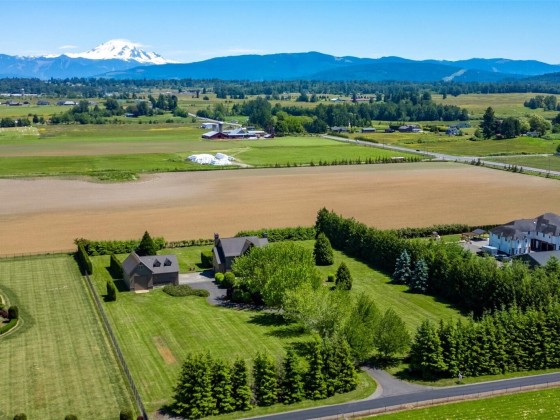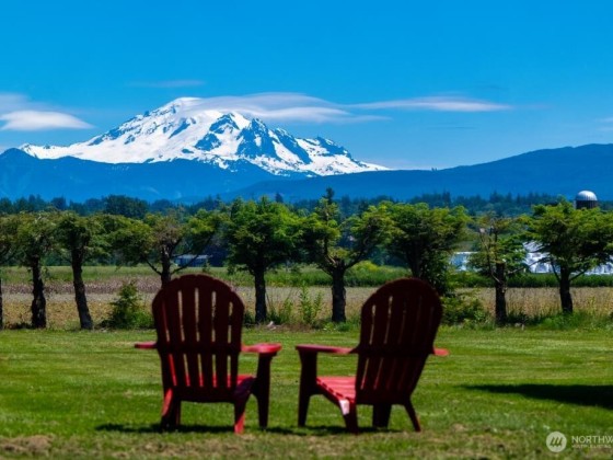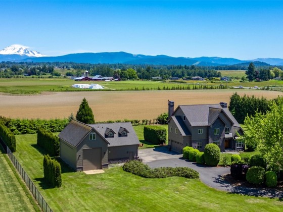 Experience luxury on 3.4 acres with this custom-built home offering breathtaking views of Mt. Baker and the Canadian mountains. Enjoy complete privacy just minutes from Bellingham and Ferndale. This home boasts 3 primary suites with full entry closets, a new hot water boiler, premium finishes—vertical grain fir doors, crown molding, brick & cedar siding, and new paint. Highlights include a theater/game room, gourmet kitchen, stone fireplace, detached shop with RV bay with second story executive office with bathroom/shower and huge loft!