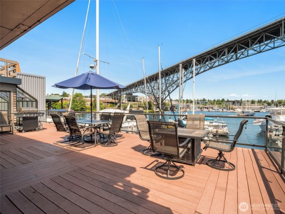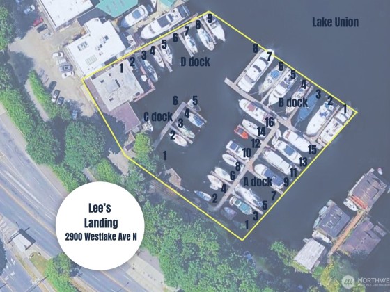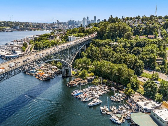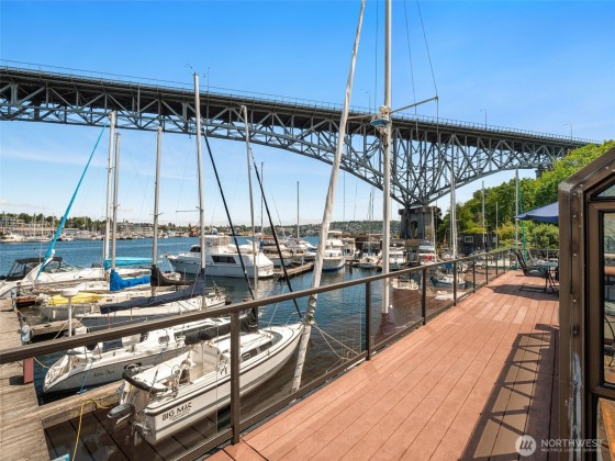 Welcome to Lee's Landing: Seattle's Premier Waterfront Legacy at the base of the Fremont Bridge in the heart of Lake Union - Discover an incredible waterfront oasis at this highly sought-after rare property with waterfront residence, offices, and marina. Expansive 3200+ sq ft home with a 2-car garage and ample parking is quintessential waterfront Seattle and has income producing commercial space and marina: 4200 sq ft of clean, rentable offices and secure marina facilities, including marina office, workshop, showers, and laundry. The 40-slip gated marina provides a pristine haven for vessels 25-55 ft, embodying a charming, practical hub amidst Seattle's vibrant boat parade. This is truly the pinnacle of Seattle waterfront living.