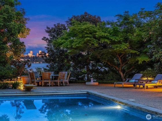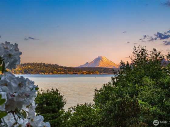 Rare offering- one of only few no-bank waterfront homes in excellent Washington Park location. Mt Rainier, Cascade Mountains, Bellevue skyline, moonrises. Extraordinarily private & expansive 120 ft no-bank lakefront estate w/ level lawn, lush grounds, Swimming pool, hot tub, & dock. Open concept home w/ perfect indoor-outdoor flow: rooms open to the sprawling lawn & pool terrace through the many glass doors, while oversized windows take in the panorama- All main rooms look onto the stunning setting. Paneled living room, sandstone fireplaces, Carrara marble kitchen, Family room, Glorious primary suite w/ vast closet space & marble bathroom. Choice location near Madison Park shops & restaurants.