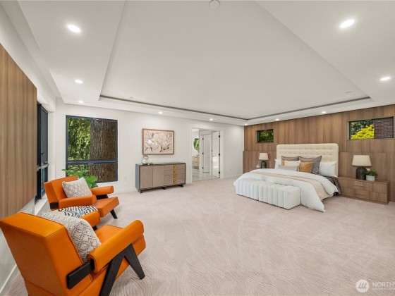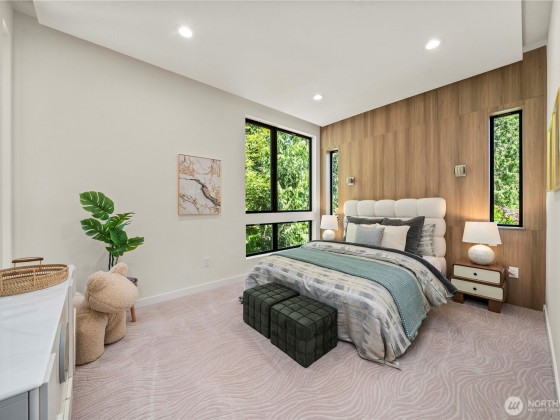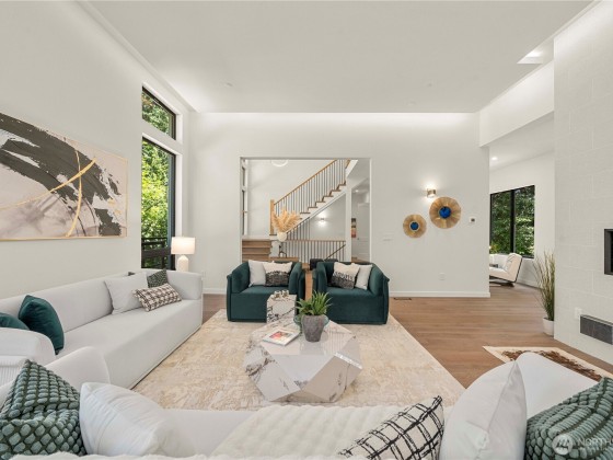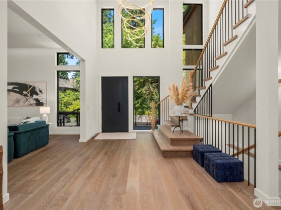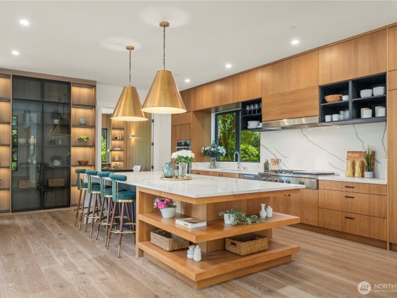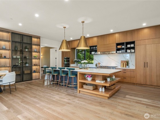 Experience elevated living in this exceptional contemporary custom estate, tucked in a private enclave just minutes from vibrant DT Bellevue. Thoughtfully crafted for both elegance & comfort, this modern masterpiece features a dramatic entry, 5 expansive bedroom suites with custom-built closets, luxurious bath with LED touch mirrors, dedicated home office with rich cabinetry & integrated inside lighting. The chef’s kitchen offers top-tier appliances, an oversized island & sleek finishes. A striking see-through fireplace anchors the open living area. The bonus room downstairs has a full bar, perfect for entertaining. 2 tankless & 2 laundries. With refined finishes, smart design & & great schools, this home is the true modern luxury living.